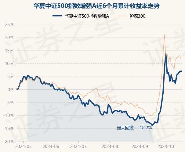 证券之星消息,10月24日,华夏中证500指数增强A最新单位净值为1.8066元,累计净值为1.8066元,较前一交易日上涨0.0%。历史数据显示该基金近1个月上涨17.36%,近3个月上涨17.97%,近6个月上涨6.37%,近1年上涨10.08%。该基金近6个月的累计收益率走势如下图: