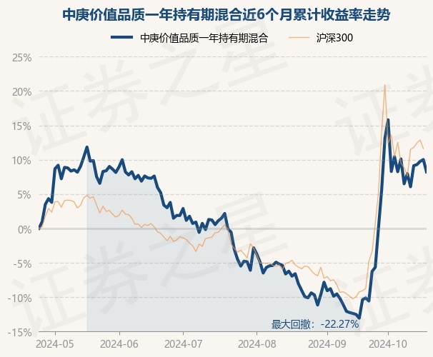 证券之星消息,10月24日,中庚价值品质一年持有期混合最新单位净值为1.5132元,累计净值为1.5132元,较前一交易日下跌1.64%。历史数据显示该基金近1个月上涨15.44%,近3个月上涨13.29%,近6个月上涨8.22%,近1年上涨9.21%。该基金近6个月的累计收益率走势如下图:
