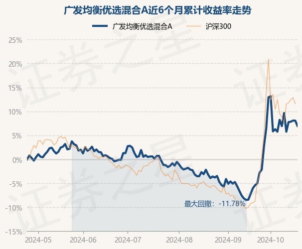 证券之星消息,10月24日,广发均衡优选混合A最新单位净值为1.0277元,累计净值为1.0277元,较前一交易日下跌1.03%。历史数据显示该基金近1个月上涨10.03%,近3个月上涨8.27%,近6个月上涨6.95%,近1年上涨16.92%。该基金近6个月的累计收益率走势如下图: