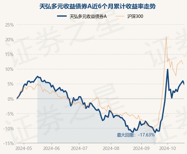 证券之星消息,10月24日,天弘多元收益债券A最新单位净值为1.1075元,累计净值为1.1075元,较前一交易日下跌1.02%。历史数据显示该基金近1个月上涨13.72%,近3个月上涨13.25%,近6个月上涨4.87%,近1年上涨2.17%。该基金近6个月的累计收益率走势如下图: