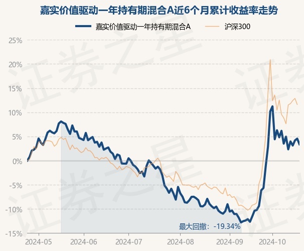 证券之星消息,10月24日,嘉实价值驱动一年持有期混合A最新单位净值为0.9426元,累计净值为0.9426元,较前一交易日下跌1.12%。历史数据显示该基金近1个月上涨10.16%,近3个月上涨9.72%,近6个月上涨3.38%,近1年上涨10.53%。该基金近6个月的累计收益率走势如下图: