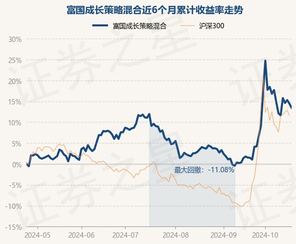 证券之星消息,10月24日,富国成长策略混合最新单位净值为0.9917元,累计净值为0.9917元,较前一交易日下跌0.86%。历史数据显示该基金近1个月上涨8.97%,近3个月上涨5.02%,近6个月上涨13.45%,近1年上涨19.02%。该基金近6个月的累计收益率走势如下图: