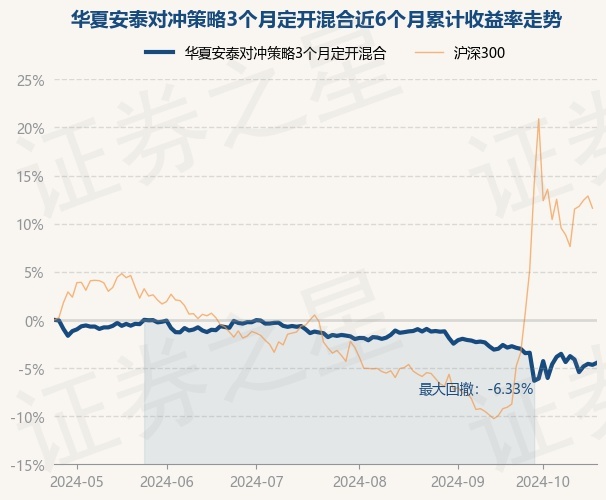 证券之星消息,10月24日,华夏安泰对冲策略3个月定开混合最新单位净值为1.1924元,累计净值为1.1924元,较前一交易日上涨0.23%。历史数据显示该基金近1个月下跌1.5%,近3个月下跌2.94%,近6个月下跌4.46%,近1年上涨0.38%。该基金近6个月的累计收益率走势如下图: