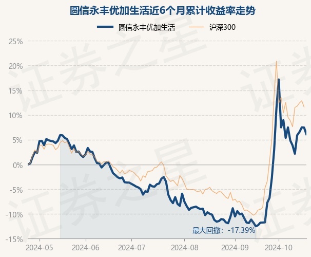 证券之星消息,10月24日,圆信永丰优加生活最新单位净值为3.0元,累计净值为3.0元,较前一交易日下跌1.24%。历史数据显示该基金近1个月上涨15.03%,近3个月上涨14.36%,近6个月上涨6.12%,近1年上涨3.61%。该基金近6个月的累计收益率走势如下图: