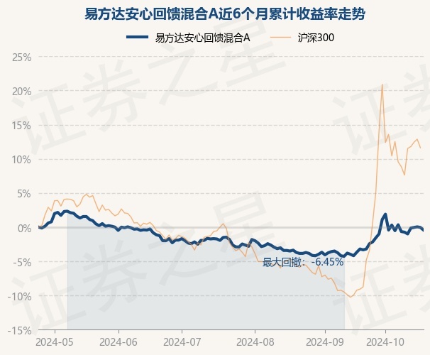 证券之星消息,10月24日,易方达安心回馈混合A最新单位净值为2.307元,累计净值为2.307元,较前一交易日下跌0.39%。历史数据显示该基金近1个月上涨2.03%,近3个月上涨2.53%,近6个月下跌0.43%,近1年上涨2.31%。该基金近6个月的累计收益率走势如下图: