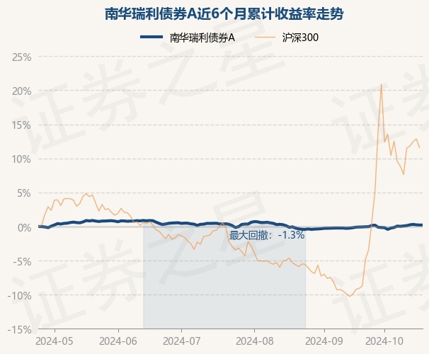 证券之星消息,10月24日,南华瑞利债券A最新单位净值为1.0327元,累计净值为1.4057元,较前一交易日上涨0.0%。历史数据显示该基金近1个月上涨0.18%,近3个月上涨0.29%,近6个月上涨0.16%,近1年上涨3.75%。该基金近6个月的累计收益率走势如下图: