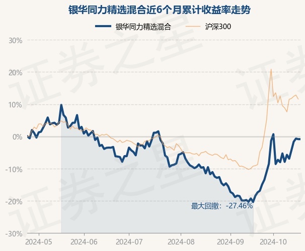 证券之星消息,10月24日,银华同力精选混合最新单位净值为0.8419元,累计净值为0.8419元,较前一交易日上涨0.0%。历史数据显示该基金近1个月上涨14.42%,近3个月上涨4.13%,近6个月下跌2.64%,近1年下跌2.67%。该基金近6个月的累计收益率走势如下图: