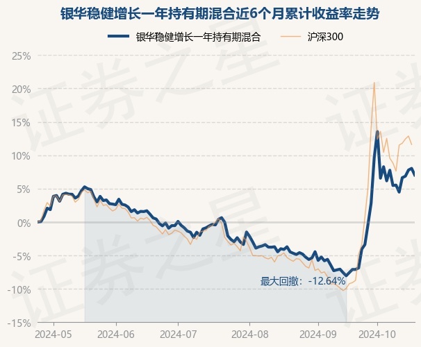 证券之星消息,10月24日,银华稳健增长一年持有期混合最新单位净值为0.6932元,累计净值为0.6932元,较前一交易日下跌0.91%。历史数据显示该基金近1个月上涨11.57%,近3个月上涨9.91%,近6个月上涨7.04%,近1年上涨4.92%。该基金近6个月的累计收益率走势如下图: