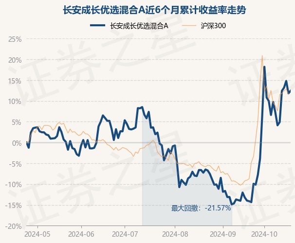 证券之星消息,10月24日,长安成长优选混合A最新单位净值为0.5662元,累计净值为0.5662元,较前一交易日上涨0.55%。历史数据显示该基金近1个月上涨24.82%,近3个月上涨13.22%,近6个月上涨12.43%,近1年上涨12.81%。该基金近6个月的累计收益率走势如下图: