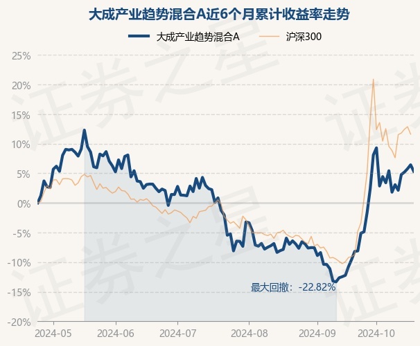 证券之星消息,10月24日,大成产业趋势混合A最新单位净值为1.4882元,累计净值为1.4882元,较前一交易日下跌1.03%。历史数据显示该基金近1个月上涨11.01%,近3个月上涨11.13%,近6个月上涨5.33%,近1年上涨16.92%。该基金近6个月的累计收益率走势如下图: