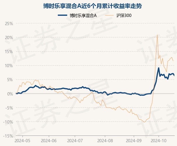 证券之星消息,10月24日,博时乐享混合A最新单位净值为0.9868元,累计净值为0.9868元,较前一交易日下跌0.59%。历史数据显示该基金近1个月上涨5.35%,近3个月上涨5.72%,近6个月上涨6.42%,近1年上涨6.94%。该基金近6个月的累计收益率走势如下图: