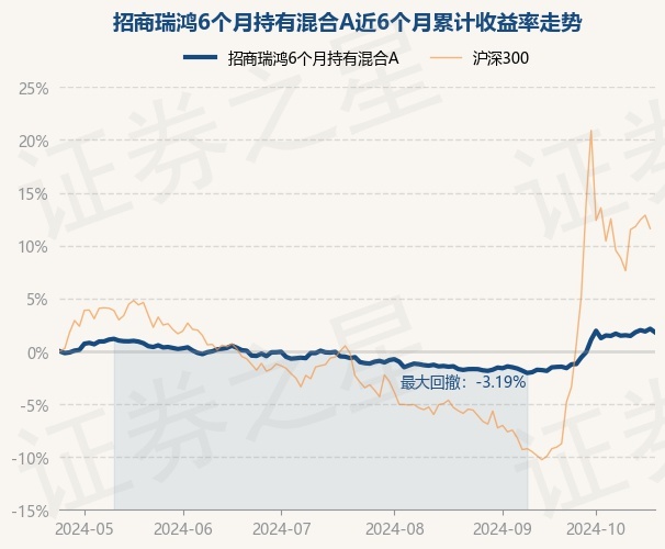 证券之星消息,10月24日,招商瑞鸿6个月持有混合A最新单位净值为1.0155元,累计净值为1.0155元,较前一交易日下跌0.32%。历史数据显示该基金近1个月上涨3.08%,近3个月上涨2.95%,近6个月上涨1.79%,近1年上涨4.7%。该基金近6个月的累计收益率走势如下图: