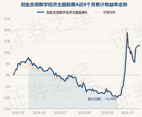 证券之星消息,10月24日,创金合信数字经济主题股票A最新单位净值为1.3575元,累计净值为1.3575元,较前一交易日上涨0.0%。历史数据显示该基金近1个月上涨17.87%,近3个月上涨16.24%,近6个月上涨11.18%,近1年上涨4.3%。该基金近6个月的累计收益率走势如下图: