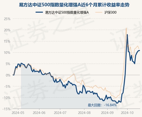 证券之星消息,10月24日,易方达中证500指数量化增强A最新单位净值为0.9066元,累计净值为0.9066元,较前一交易日上涨0.0%。历史数据显示该基金近1个月上涨20.06%,近3个月上涨19.87%,近6个月上涨9.86%,近1年上涨12.8%。该基金近6个月的累计收益率走势如下图: