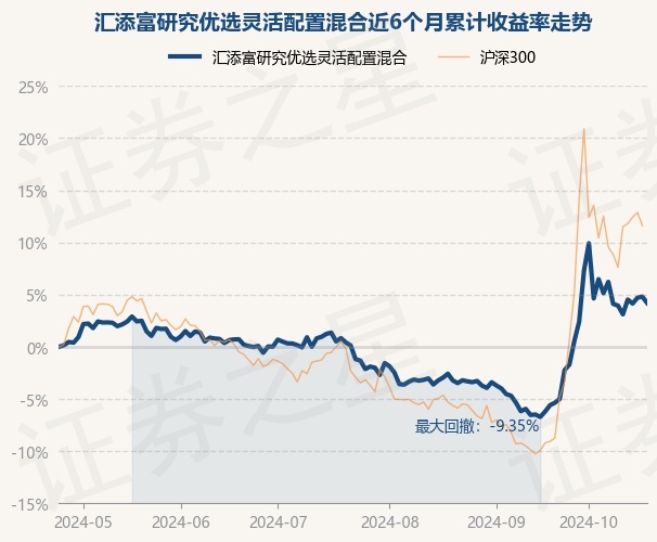 证券之星消息,10月24日,汇添富研究优选灵活配置混合最新单位净值为0.9279元,累计净值为1.1779元,较前一交易日下跌0.59%。历史数据显示该基金近1个月上涨6.57%,近3个月上涨5.59%,近6个月上涨4.19%,近1年上涨8.55%。该基金近6个月的累计收益率走势如下图: