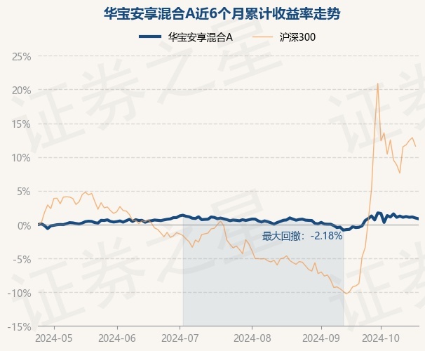 证券之星消息,10月24日,华宝安享混合A最新单位净值为1.1205元,累计净值为1.1205元,较前一交易日下跌0.12%。历史数据显示该基金近1个月上涨0.25%,近3个月上涨0.18%,近6个月上涨0.86%,近1年上涨7.03%。该基金近6个月的累计收益率走势如下图: