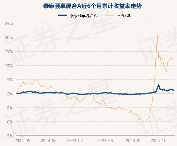 证券之星消息,10月24日,泰康颐享混合A最新单位净值为1.3341元,累计净值为1.3341元,较前一交易日下跌0.1%。历史数据显示该基金近1个月上涨0.85%,近3个月上涨1.25%,近6个月上涨1.1%,近1年上涨4.1%。该基金近6个月的累计收益率走势如下图: