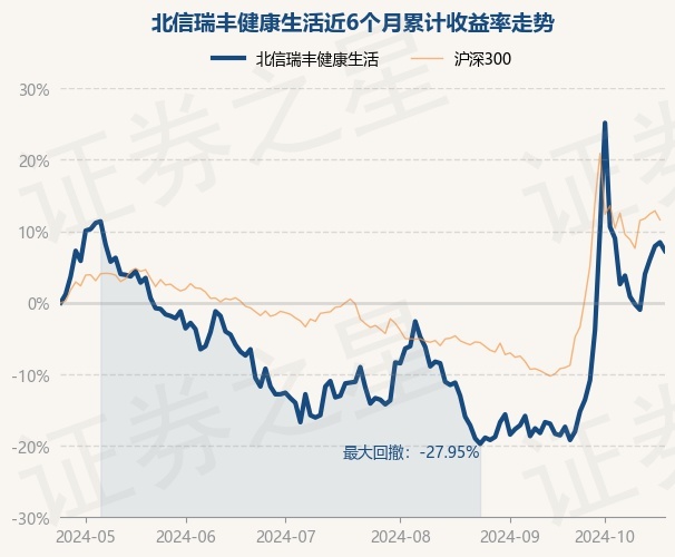 证券之星消息,10月24日,北信瑞丰健康生活最新单位净值为0.989元,累计净值为0.989元,较前一交易日下跌1.1%。历史数据显示该基金近1个月上涨26.47%,近3个月上涨24.87%,近6个月上涨7.27%,近1年下跌19.98%。该基金近6个月的累计收益率走势如下图: