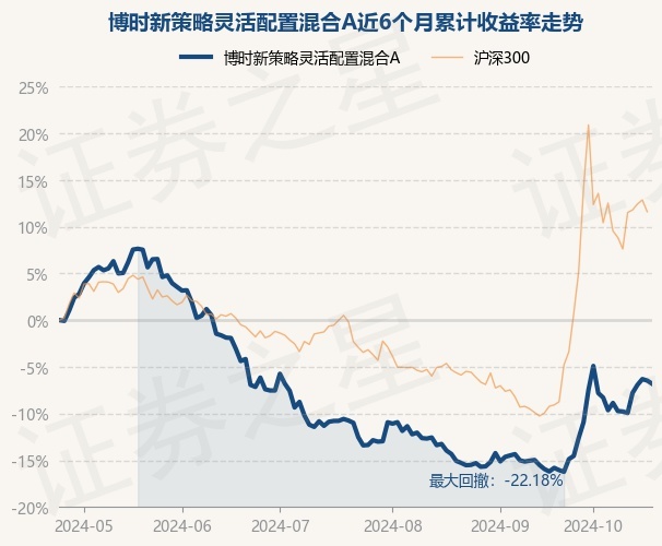证券之星消息,10月24日,博时新策略灵活配置混合A最新单位净值为1.282元,累计净值为1.3345元,较前一交易日下跌0.37%。历史数据显示该基金近1个月上涨9.48%,近3个月上涨7.61%,近6个月下跌6.81%,近1年下跌12.77%。该基金近6个月的累计收益率走势如下图: