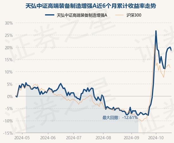 证券之星消息,10月24日,天弘中证高端装备制造增强A最新单位净值为0.8247元,累计净值为0.8247元,较前一交易日下跌1.09%。历史数据显示该基金近1个月上涨24.24%,近3个月上涨19.9%,近6个月上涨18.68%,近1年上涨20.27%。该基金近6个月的累计收益率走势如下图: