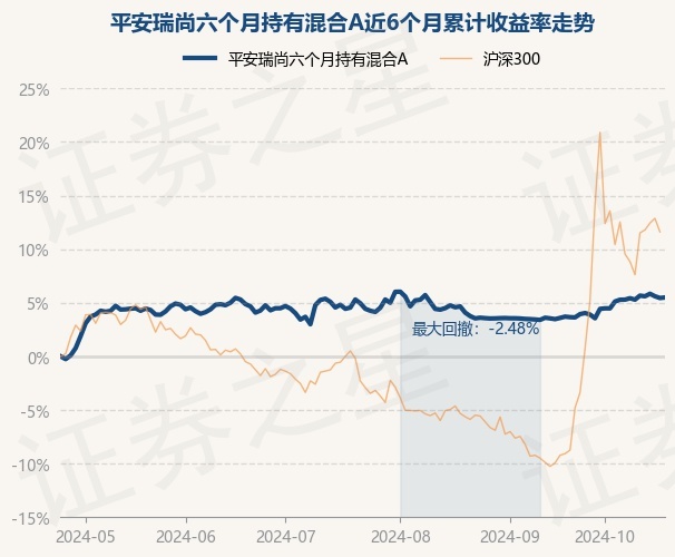 证券之星消息,10月24日,平安瑞尚六个月持有混合A最新单位净值为1.0389元,累计净值为1.0389元,较前一交易日上涨0.05%。历史数据显示该基金近1个月上涨1.49%,近3个月上涨1.19%,近6个月上涨5.49%,近1年上涨12.17%。该基金近6个月的累计收益率走势如下图: