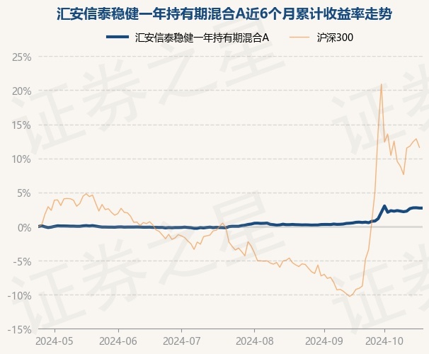 证券之星消息,10月24日,汇安信泰稳健一年持有期混合A最新单位净值为0.8835元,累计净值为0.8835元,较前一交易日上涨0.0%。历史数据显示该基金近1个月上涨2.0%,近3个月上涨2.54%,近6个月上涨2.57%,近1年上涨4.67%。该基金近6个月的累计收益率走势如下图: