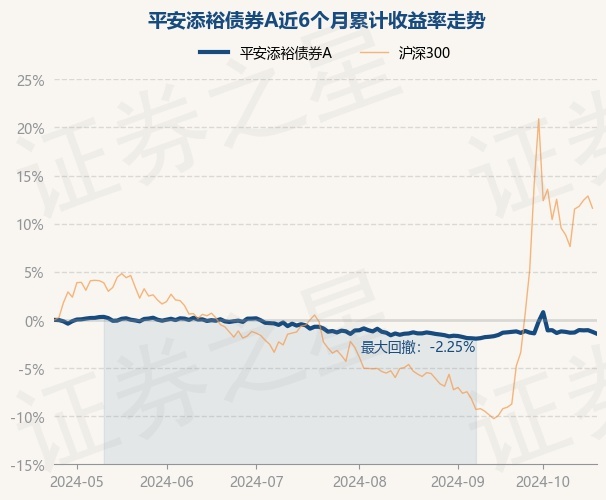 证券之星消息,10月24日,平安添裕债券A最新单位净值为1.0074元,累计净值为1.0074元,较前一交易日下跌0.2%。历史数据显示该基金近1个月下跌0.09%,近3个月下跌0.29%,近6个月下跌1.44%,近1年上涨3.9%。该基金近6个月的累计收益率走势如下图: