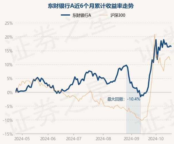 证券之星消息,10月24日,东财银行A最新单位净值为1.158元,累计净值为1.158元,较前一交易日下跌0.22%。历史数据显示该基金近1个月上涨9.86%,近3个月上涨9.14%,近6个月上涨16.45%,近1年上涨28.18%。该基金近6个月的累计收益率走势如下图: