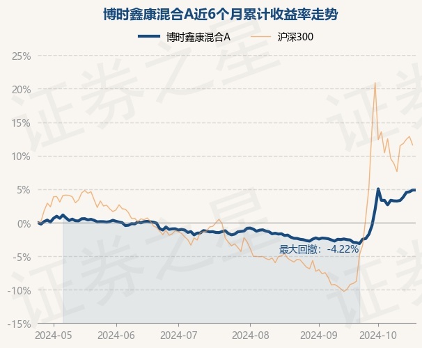 证券之星消息,10月24日,博时鑫康混合A最新单位净值为1.0649元,累计净值为1.1033元,较前一交易日上涨0.0%。历史数据显示该基金近1个月上涨7.18%,近3个月上涨6.46%,近6个月上涨4.52%,近1年上涨1.55%。该基金近6个月的累计收益率走势如下图: