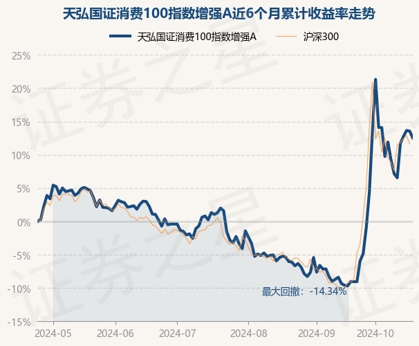 证券之星消息,10月24日,天弘国证消费100指数增强A最新单位净值为0.7207元,累计净值为0.7207元,较前一交易日下跌0.89%。历史数据显示该基金近1个月上涨19.66%,近3个月上涨15.78%,近6个月上涨12.54%,近1年上涨7.7%。该基金近6个月的累计收益率走势如下图: