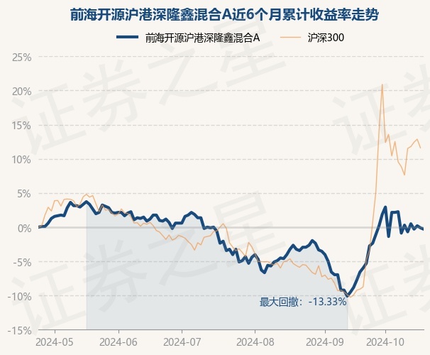 证券之星消息,10月24日,前海开源沪港深隆鑫混合A最新单位净值为1.017元,累计净值为1.627元,较前一交易日下跌0.2%。历史数据显示该基金近1个月上涨2.52%,近3个月上涨3.04%,近6个月下跌0.29%,近1年上涨9.71%。该基金近6个月的累计收益率走势如下图: