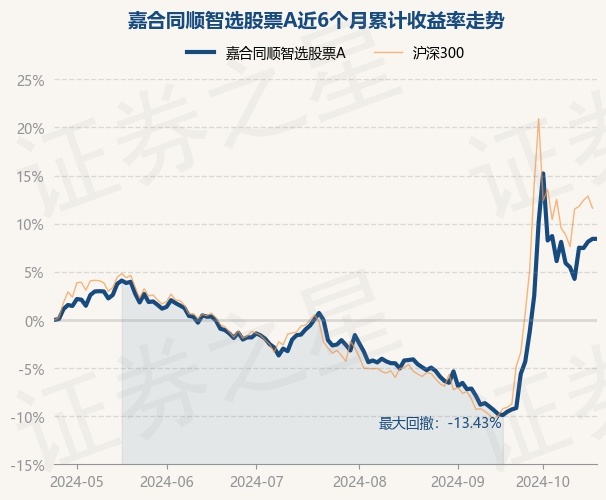 证券之星消息,10月24日,嘉合同顺智选股票A最新单位净值为0.8148元,累计净值为0.9648元,较前一交易日上涨0.0%。历史数据显示该基金近1个月上涨13.42%,近3个月上涨9.97%,近6个月上涨7.06%,近1年上涨10.62%。该基金近6个月的累计收益率走势如下图: