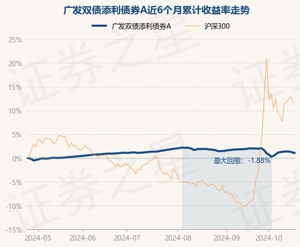证券之星消息,10月24日,广发双债添利债券A最新单位净值为1.2136元,累计净值为1.6365元,较前一交易日下跌0.02%。历史数据显示该基金近1个月下跌0.87%,近3个月下跌0.54%,近6个月上涨1.08%,近1年上涨5.47%。该基金近6个月的累计收益率走势如下图: