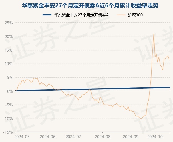 证券之星消息,10月24日,华泰紫金丰安27个月定开债券A最新单位净值为1.0097元,累计净值为1.1137元,较前一交易日上涨0.0%。历史数据显示该基金近1个月上涨0.22%,近3个月上涨0.66%,近6个月上涨1.32%,近1年上涨2.58%。该基金近6个月的累计收益率走势如下图: