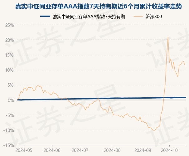 证券之星消息,10月24日,嘉实中证同业存单AAA指数7天持有期最新单位净值为1.054元,累计净值为1.054元,较前一交易日上涨0.01%。历史数据显示该基金近1个月上涨0.09%,近3个月上涨0.35%,近6个月上涨0.81%,近1年上涨2.25%。该基金近6个月的累计收益率走势如下图:
