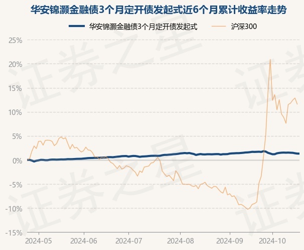 证券之星消息,10月24日,华安锦灏金融债3个月定开债发起式最新单位净值为1.0326元,累计净值为1.1066元,较前一交易日下跌0.01%。历史数据显示该基金近1个月下跌0.35%,近3个月上涨0.26%,近6个月上涨1.31%,近1年上涨4.01%。该基金近6个月的累计收益率走势如下图: