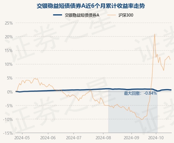 证券之星消息,10月24日,交银稳益短债债券A最新单位净值为1.0233元,累计净值为1.0503元,较前一交易日下跌0.01%。历史数据显示该基金近1个月下跌0.28%,近3个月下跌0.2%,近6个月上涨0.57%,近1年上涨2.65%。该基金近6个月的累计收益率走势如下图: