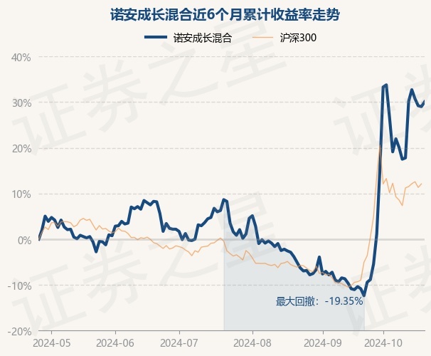 证券之星消息,10月25日,诺安成长混合最新单位净值为1.367元,累计净值为1.812元,较前一交易日上涨0.81%。历史数据显示该基金近1个月上涨42.69%,近3个月上涨28.96%,近6个月上涨30.07%,近1年上涨10.51%。该基金近6个月的累计收益率走势如下图: