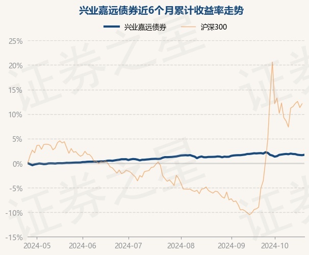 证券之星消息,10月25日,兴业嘉远债券最新单位净值为1.0211元,累计净值为1.0471元,较前一交易日上涨0.08%。历史数据显示该基金近1个月下跌0.51%,近3个月上涨0.46%,近6个月上涨1.7%,近1年上涨4.6%。该基金近6个月的累计收益率走势如下图: