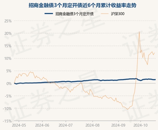 证券之星消息,10月25日,招商金融债3个月定开债最新单位净值为1.0326元,累计净值为1.1289元,较前一交易日上涨0.04%。历史数据显示该基金近1个月下跌0.39%,近3个月上涨0.39%,近6个月上涨1.44%,近1年上涨4.22%。该基金近6个月的累计收益率走势如下图: