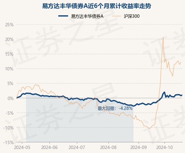证券之星消息,10月25日,易方达丰华债券A最新单位净值为1.2855元,累计净值为1.4987元,较前一交易日上涨0.2%。历史数据显示该基金近1个月上涨1.81%,近3个月上涨2.45%,近6个月上涨0.97%,近1年上涨4.07%。该基金近6个月的累计收益率走势如下图: