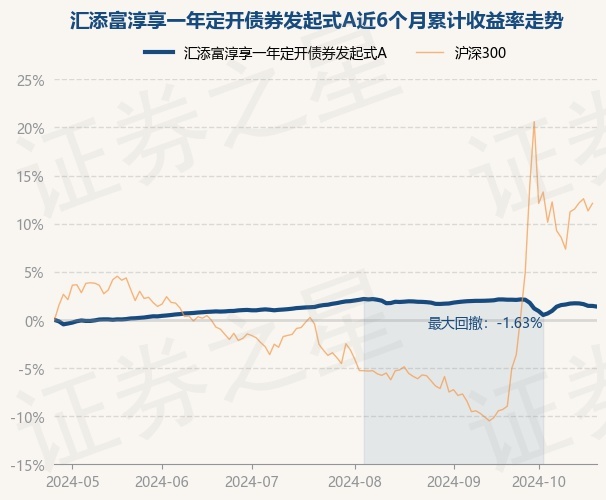 证券之星消息,10月25日,汇添富淳享一年定开债券发起式A最新单位净值为1.0361元,累计净值为1.0917元,较前一交易日下跌0.07%。历史数据显示该基金近1个月下跌0.73%,近3个月下跌0.29%,近6个月上涨1.38%,近1年上涨6.44%。该基金近6个月的累计收益率走势如下图: