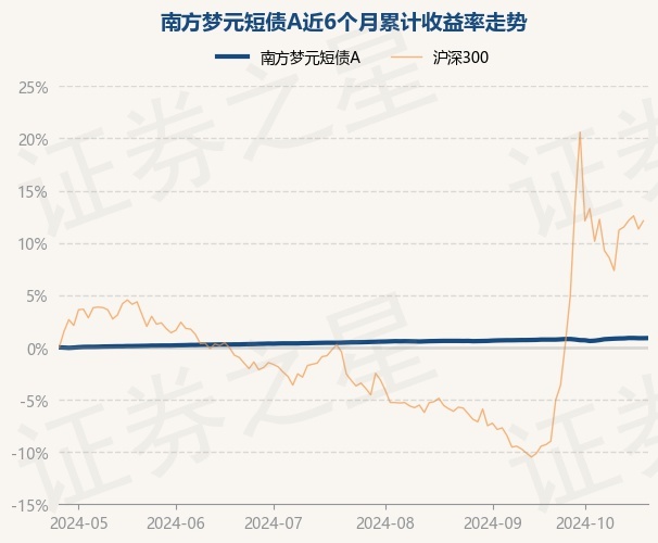 证券之星消息,10月25日,南方梦元短债A最新单位净值为1.1318元,累计净值为1.1468元,较前一交易日上涨0.01%。历史数据显示该基金近1个月上涨0.09%,近3个月上涨0.39%,近6个月上涨0.89%,近1年上涨2.58%。该基金近6个月的累计收益率走势如下图: