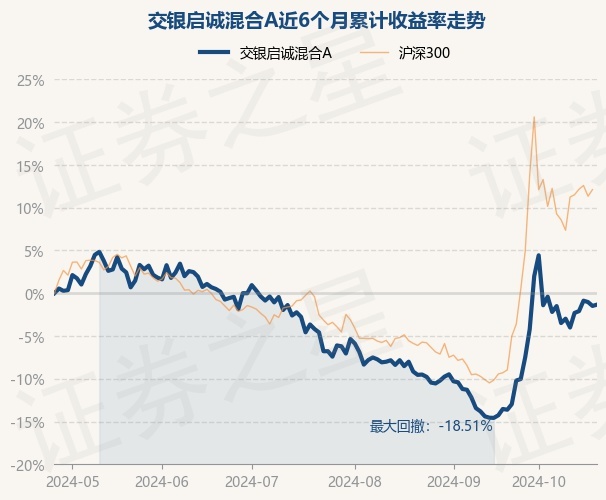 证券之星消息,10月25日,交银启诚混合A最新单位净值为1.1108元,累计净值为1.1108元,较前一交易日上涨0.15%。历史数据显示该基金近1个月上涨9.67%,近3个月上涨6.56%,近6个月下跌1.34%,近1年上涨12.28%。该基金近6个月的累计收益率走势如下图: