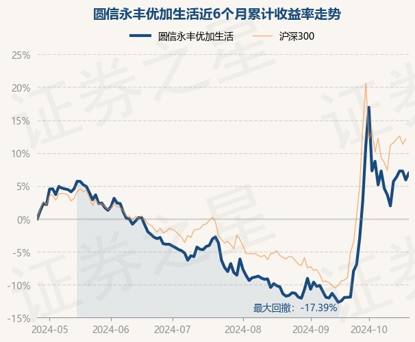 证券之星消息,10月25日,圆信永丰优加生活最新单位净值为3.0292元,累计净值为3.0292元,较前一交易日上涨0.97%。历史数据显示该基金近1个月上涨14.91%,近3个月上涨16.25%,近6个月上涨6.94%,近1年上涨4.26%。该基金近6个月的累计收益率走势如下图: