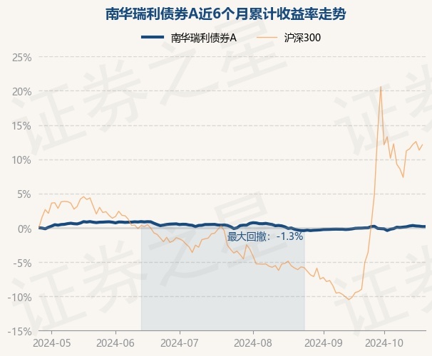 证券之星消息,10月25日,南华瑞利债券A最新单位净值为1.0333元,累计净值为1.4063元,较前一交易日上涨0.0%。历史数据显示该基金近1个月上涨0.06%,近3个月上涨0.24%,近6个月上涨0.23%,近1年上涨3.66%。该基金近6个月的累计收益率走势如下图: