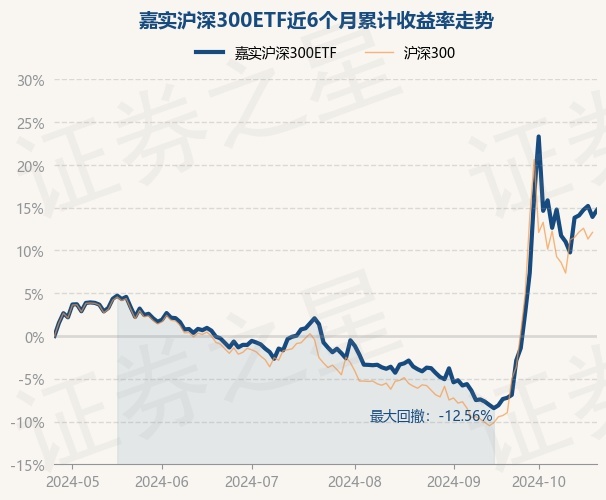 证券之星消息,10月25日,嘉实沪深300ETF最新单位净值为4.1438元,累计净值为1.8726元,较前一交易日上涨0.71%。历史数据显示该基金近1个月上涨16.37%,近3个月上涨16.94%,近6个月上涨14.71%,近1年上涨15.45%。该基金近6个月的累计收益率走势如下图:
