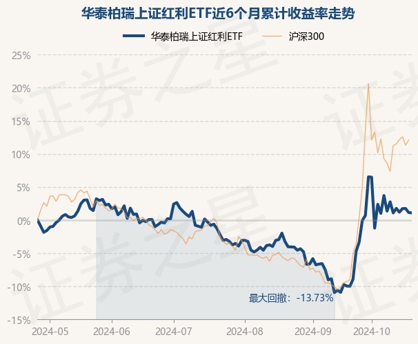 证券之星消息,10月25日,华泰柏瑞上证红利ETF最新单位净值为3.2243元,累计净值为2.9588元,较前一交易日下跌0.06%。历史数据显示该基金近1个月上涨4.54%,近3个月上涨4.44%,近6个月上涨1.08%,近1年上涨13.03%。该基金近6个月的累计收益率走势如下图: