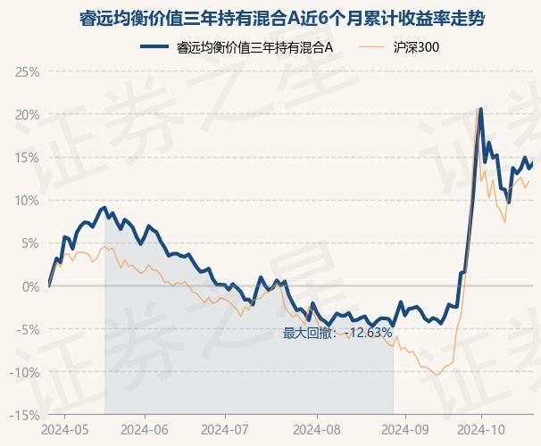 证券之星消息,10月25日,睿远均衡价值三年持有混合A最新单位净值为1.3634元,累计净值为1.3634元,较前一交易日上涨0.51%。历史数据显示该基金近1个月上涨12.42%,近3个月上涨17.61%,近6个月上涨14.19%,近1年上涨17.36%。该基金近6个月的累计收益率走势如下图:
