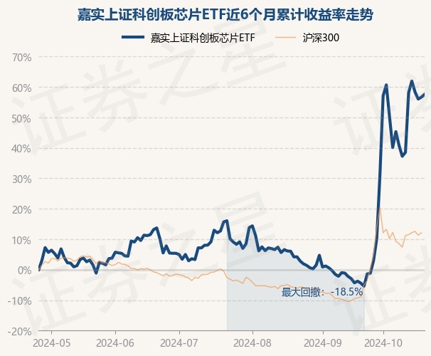 证券之星消息,10月25日,嘉实上证科创板芯片ETF最新单位净值为1.3926元,累计净值为1.3926元,较前一交易日上涨0.59%。历史数据显示该基金近1个月上涨59.41%,近3个月上涨45.46%,近6个月上涨57.55%,近1年上涨28.9%。该基金近6个月的累计收益率走势如下图: